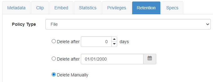 - If you have files you want to keep, you can set their File retention to "Delete Manually."