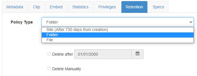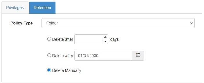 - Any file in the folder with a policy type set to "Folder" will adhere to the folder's retention setting.