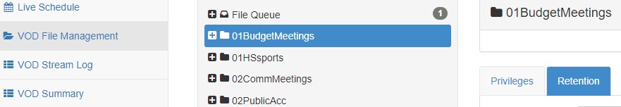 Instructions to set up or adjust video file retention settings on your VieBit VOD service.